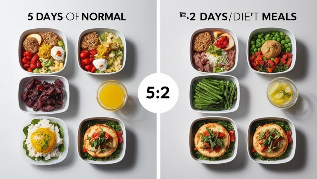 Método 5:2 Alimentação normal durante cinco dias da semana, enquanto nos outros dois dias há uma restrição severa de calorias (aproximadamente 500-600 calorias por dia). Pode ser mais desafiador, mas é popular por sua flexibilidade.